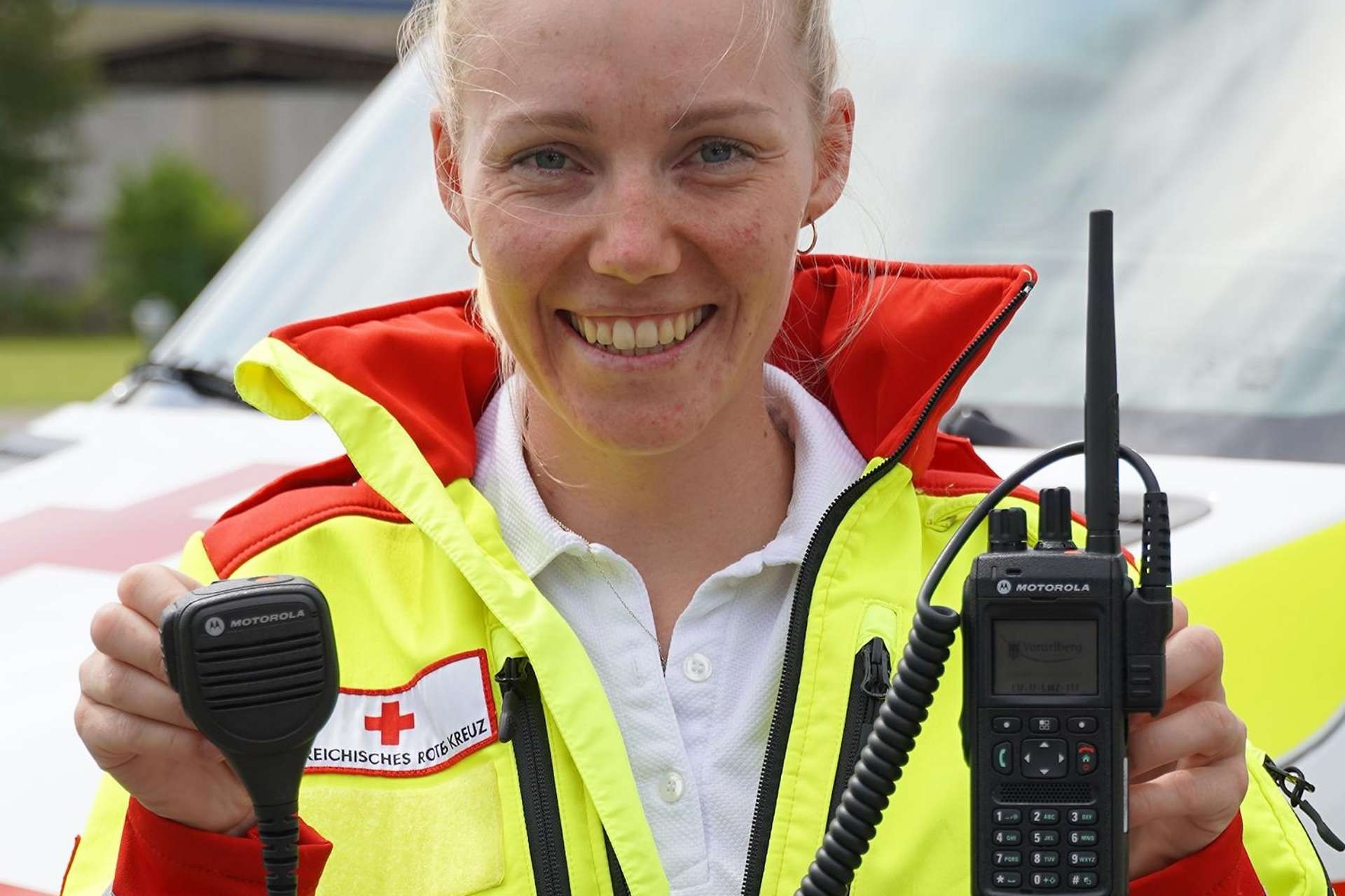 The Red Cross in Vorarlberg, Austria is switching from analogue technology to digital radio. For this purpose, around 350 radios have to be replaced in the local offices and ambulances. In addition, more than 70 radio base stations have been installed nationwide.